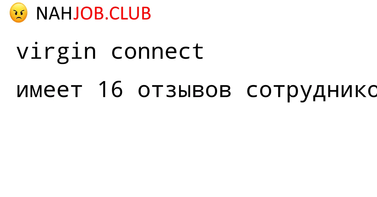🔴 Изучаете вакансию Начальник компании VIRGIN CONNECT? Почитайте 1 отзыв бывших сотрудников про работу по должности Начальник в VIRGIN CONNECT