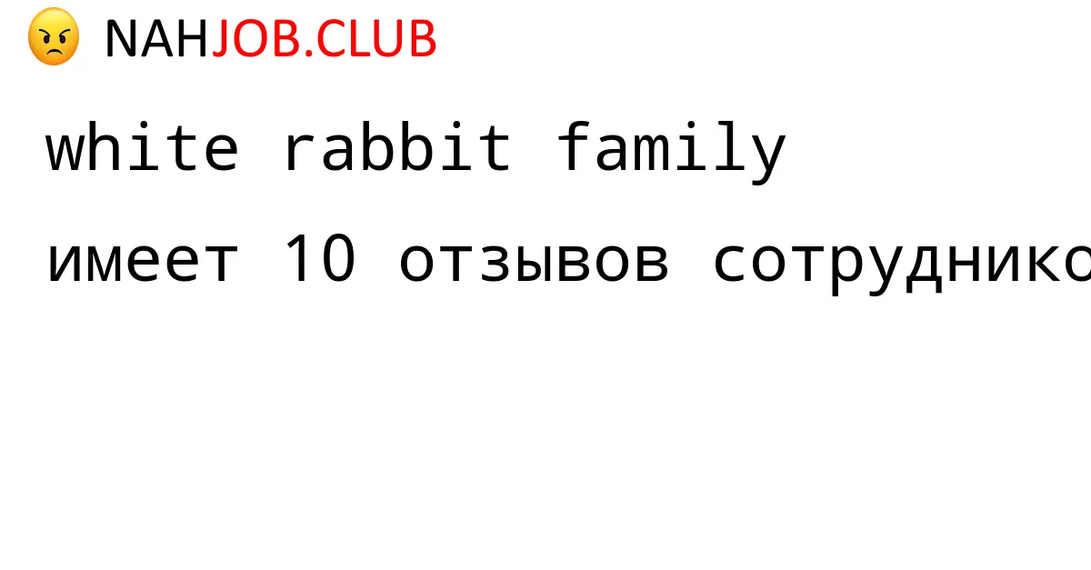 Изучаете информацию о работе в WHITE RABBIT FAMILY и хотите узнать реальные условия и зарплаты?