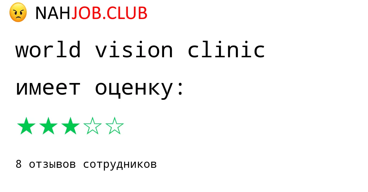 🔴 Изучаете вакансию Куратор лечения компании WORLD VISION CLINIC? Почитайте 1 отзыв бывших сотрудников про работу по должности Куратор лечения в WORLD VISION CLINIC
