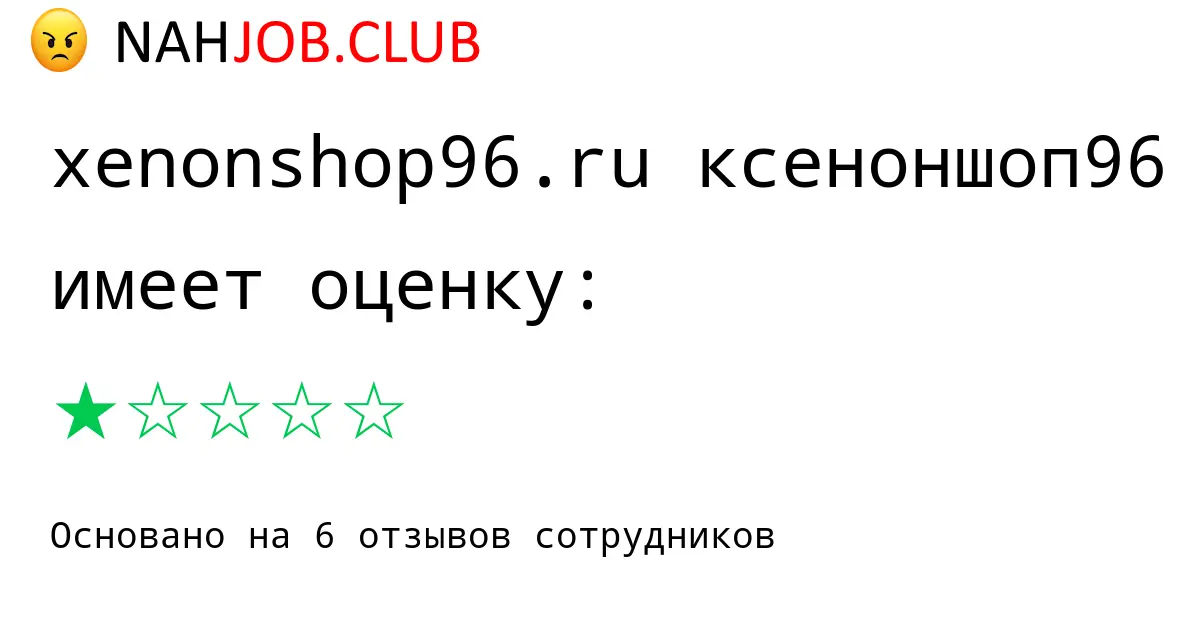 🔴 Изучаете вакансию установщик компании XENONSHOP96.RU КСЕНОНШОП96? Почитайте 1 отзыв бывших сотрудников про работу по должности Установщик в XENONSHOP96.RU КСЕНОНШОП96