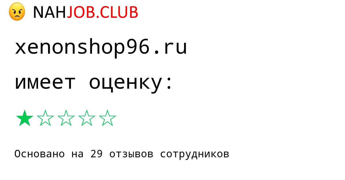 🔴 Изучаете вакансию оператор компании XENONSHOP96.RU? Почитайте 1 отзыв бывших сотрудников про работу по должности Оператор в XENONSHOP96.RU