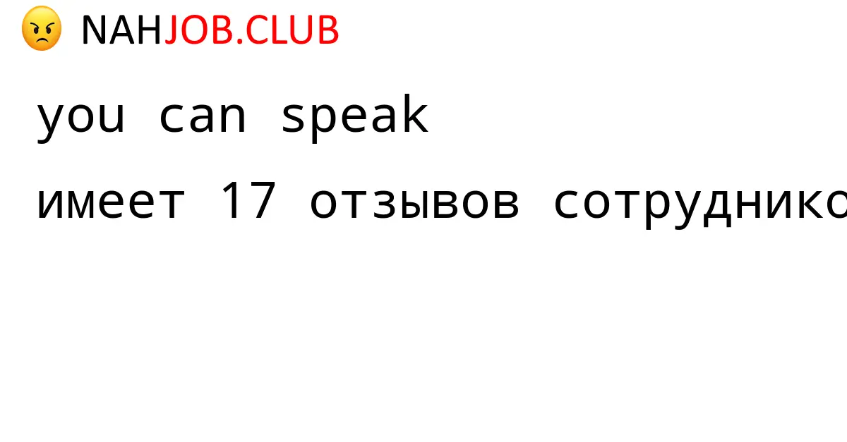 🔴 Изучаете вакансию преподаватель английского языка компании YOU CAN SPEAK? Почитайте 1 отзыв бывших сотрудников про работу по должности Преподаватель английского языка в YOU CAN SPEAK