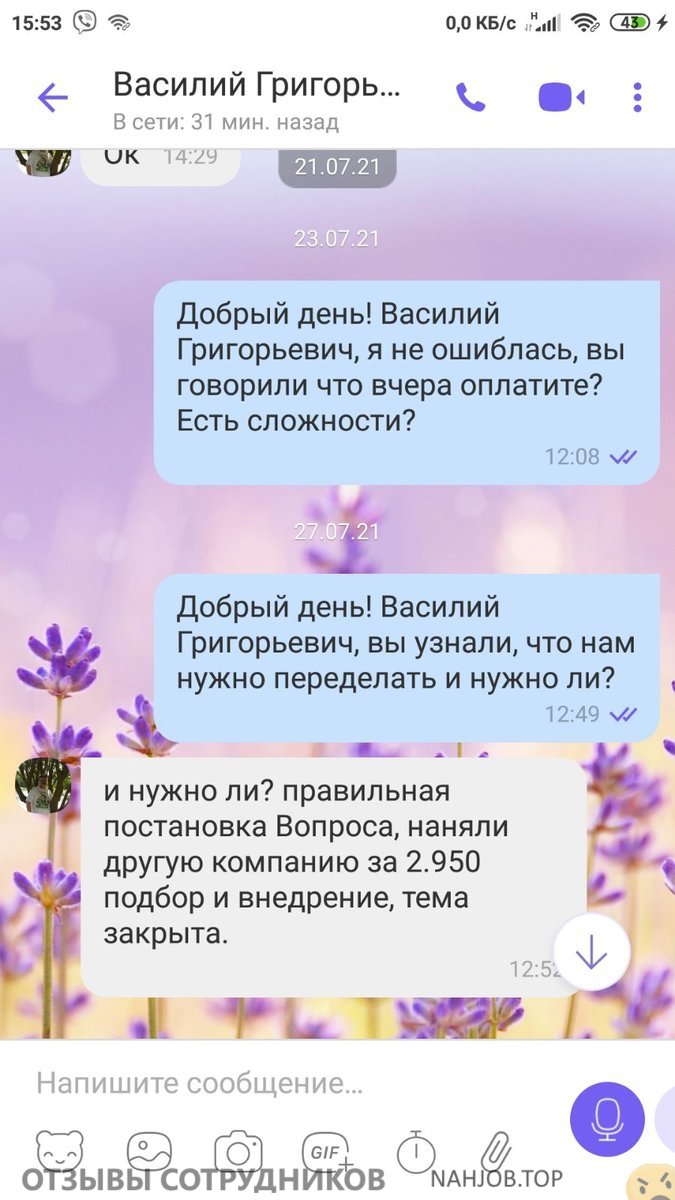Недостатки:Наше Кадровое агентство работало с данной компанией совсем недолго. Подобрали кандидата быстро, но через неделю кандидатка оттуда сбежала. Не понравилось всё — от директора, работающего там, персонала до созданных условий труда. Экономия была на всем, включая электроэнергию. О личности директора [П.] [В.] [Г.] можно говорить долго, в написанные здесь характеристики этого «божка» — охотно верю. Лживый, непорядочный, алчный, с огромным самомнением и короной на голове. Хороший психолог, легко входит в доверие к людям и бросает на деньги. Мы начали работать по поиску персонала с ним, не подписав окончательно оригиналы договора, только по сброшенным им сканам на вайбер, так как ему нужен был срочно человек. Тянул с подписанием договора и тогда, когда кандидатка вышла на работу. Как теперь понимаю, платить изначально никто и не собирался. Я нашла и общалась с другими компаниями, обманутыми этой самоуверенной в себе и своей неотразимости «личностью.»