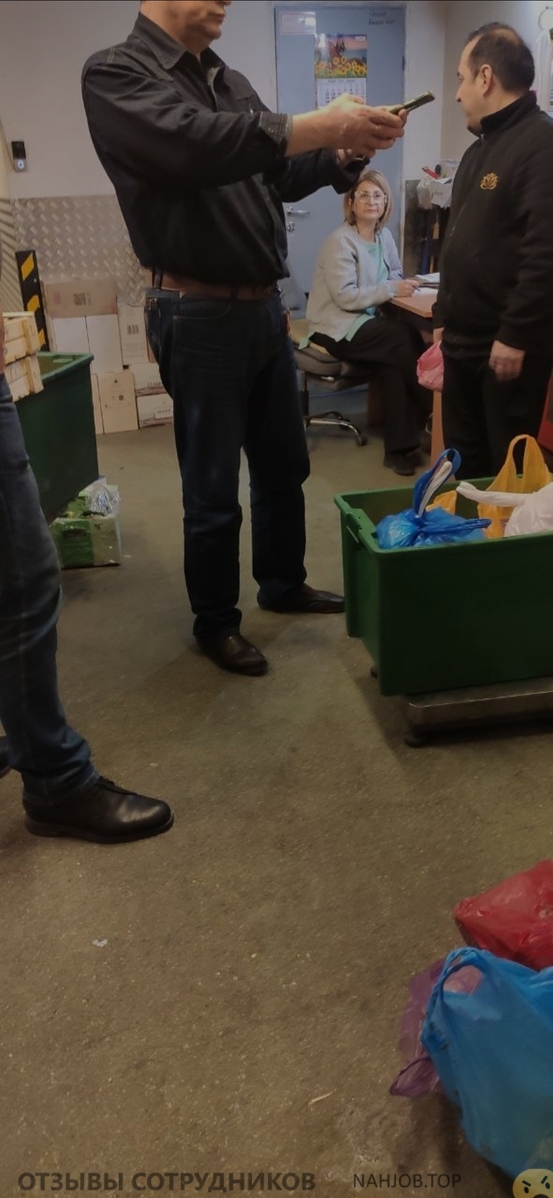 Грузчик (их двое в смене) привозит товар с парковки на тележке. Тележку с товаром фотографирует охранник. Потом всё это взвешивается (если это овощи, например) и каждую позицию охранник тоже фотографирует и записывает название))) Многие водители оставляют товар и уезжают, т.к. приёмка очень долгая.