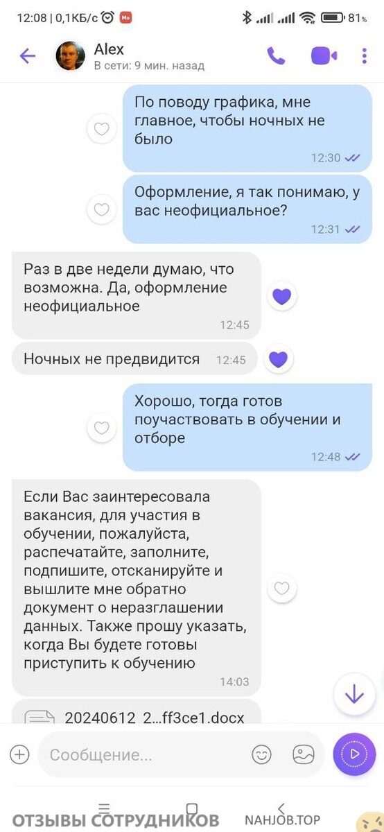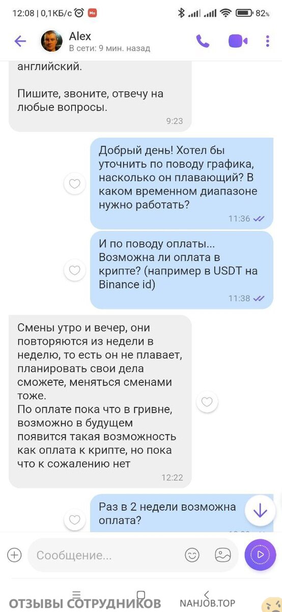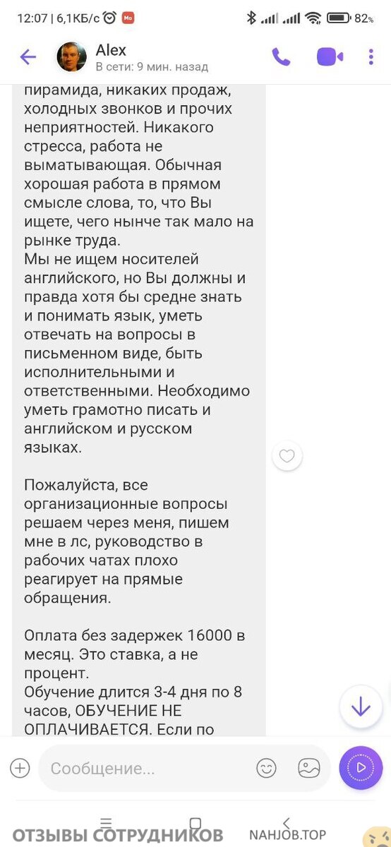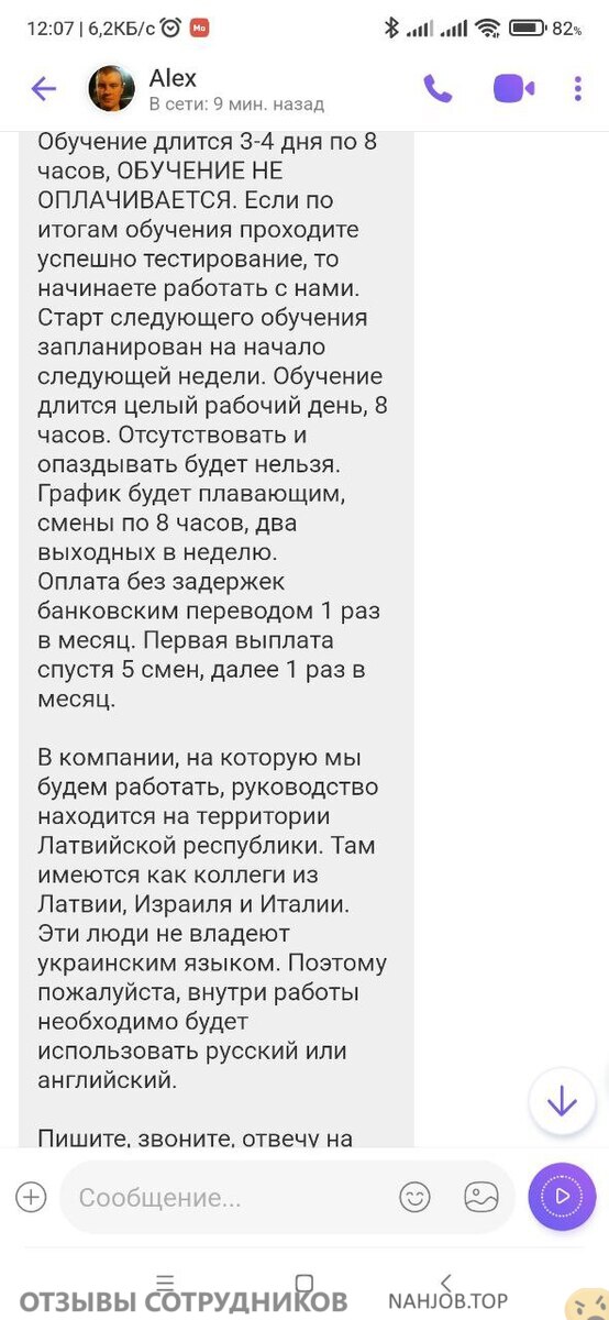 Прикол в том, что в описании вакансии не указано, что первая оплата через 5 смен, а потом раз в месяц, а в том сообщении, что он присылает уже в вайбер — там есть.