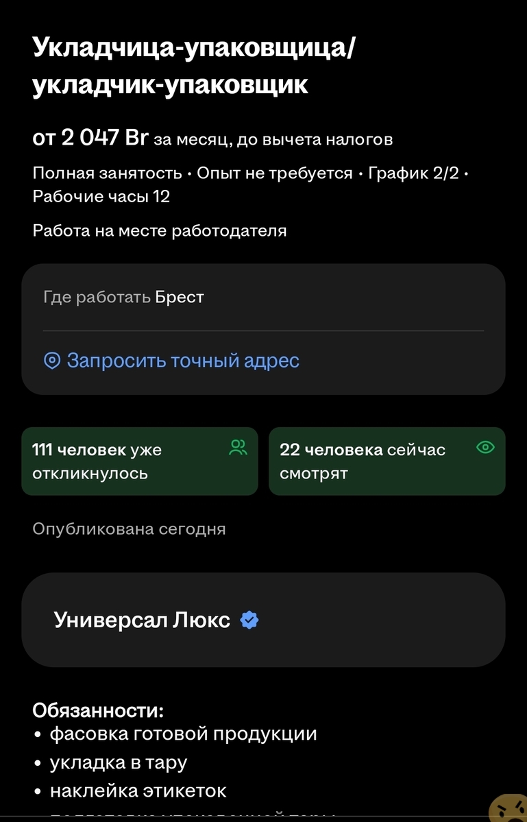 - 👉 Работа в УНИВЕРСАЛ ЛЮКС в Бресте (2 отзыва) →